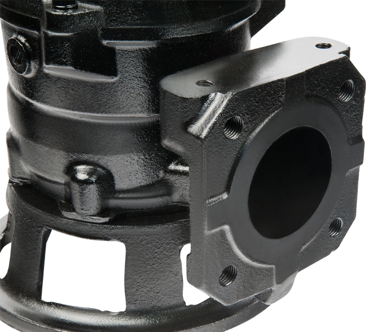 Надежность и долговечность аппарата обусловлены его устройством. Корпус выполнен из прочного чугуна, что защищает внутренние компоненты от механических повреждений и коррозии. Для удобства монтажа и переноски модель оснащена рукояткой. Выходной патрубок имеет стандартный диаметр 80 мм (DN 80) для подключения к канализационным шлангам.