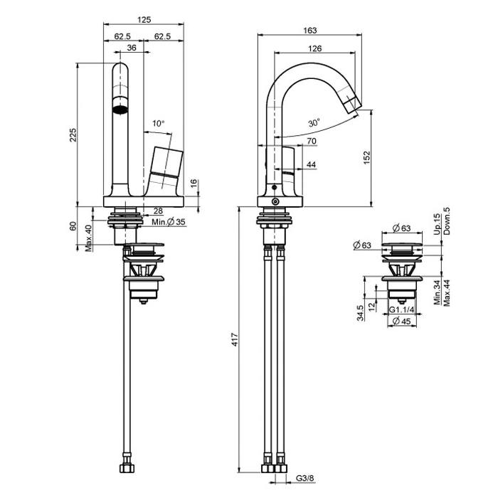 Смеситель для раковины с донным клапаном от FIMA Carlo Frattini спроектирован для простого монтажа и соответствует стандартным посадочным размерам.