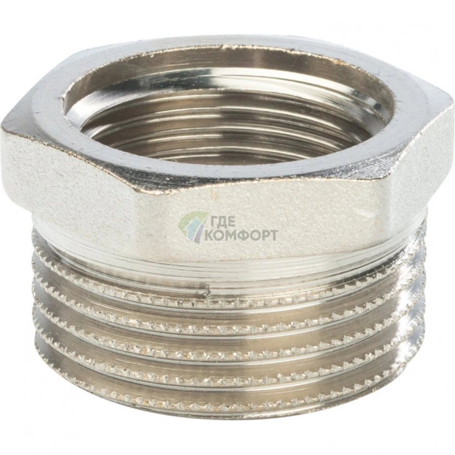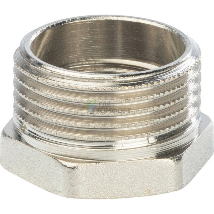Футорка никелированная Stout - это сантехнический фитинг, предназначенный для перехода с внутренней резьбы 1 дюйм на наружную резьбу 3/8 дюйма. Она служит для герметичного и долговечного соединения труб и оборудования разного диаметра в бытовых и коммерческих системах.