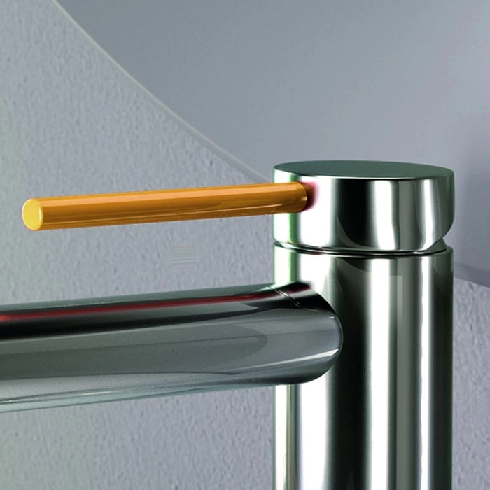- Эффектное визуальное обновление. Сочно-оранжевый цвет Arancio создаёт стильный контраст с хромированной поверхностью, мгновенно меняя восприятие всего смесителя.