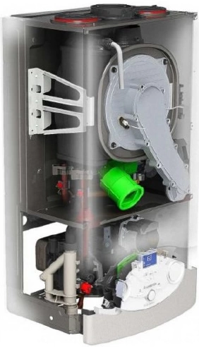 - Закрытая камера сгорания повышает безопасность эксплуатации и сохраняет тепло в помещении, позволяя использовать котел в зданиях самого разного профиля