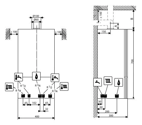 - Компактные размеры и настенный способ монтажа позволяют легко разместить котел даже в небольшом помещении: кухни, санузле или кладовой.
