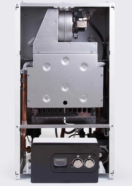 - Экономия на обслуживании и ремонте. Первичный теплообменник изготавливается из меди. Этот материал устойчив к коррозии, обладает высокой теплопроводностью и увеличивает срок службы котла.