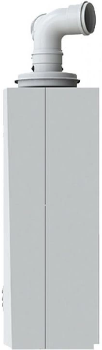Закрытая камера сгорания (турбо) обеспечивает безопасность и независимость от тяги в помещении. Котел забирает воздух для горения с улицы через коаксиальный дымоход, что исключает риск обратной тяги и не требует дополнительной приточной вентиляции в котельной.