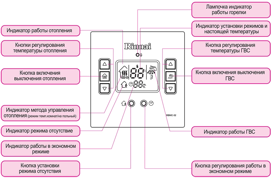 - Совместимость с опциональными системами управления, включая поддержу Wi-Fi и интеграцию в умный дом (модели Rinnai с индексом RMF), позволит управлять техникой дистанционно через мобильное приложение
