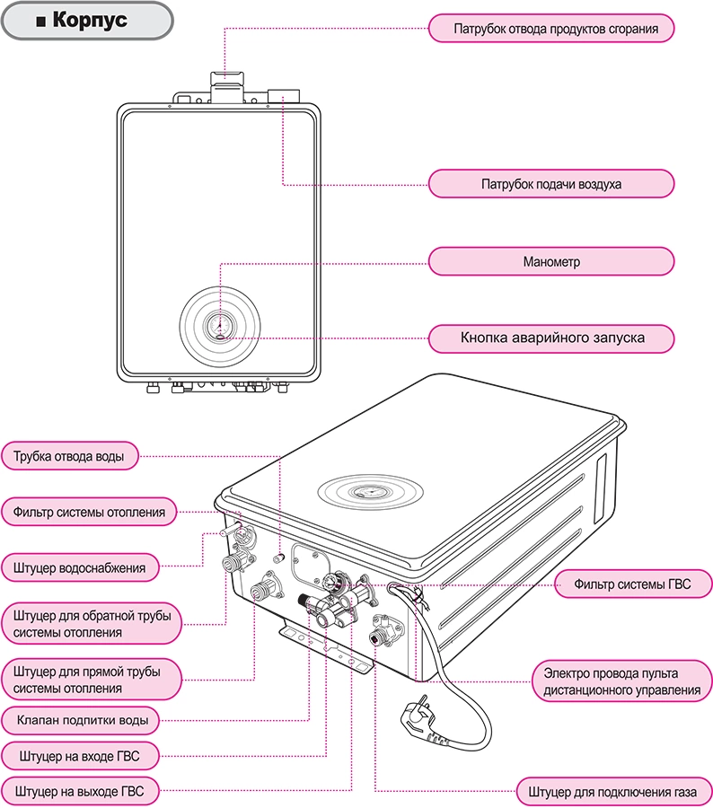 - Два контура — отопление и горячее водоснабжение (ГВС) для одновременного комфорта в доме