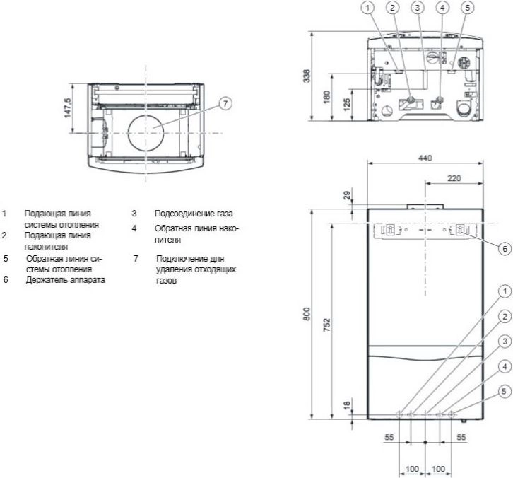 - Возможность подключить бойлер различного объёма, если требуется организовать горячее водоснабжение