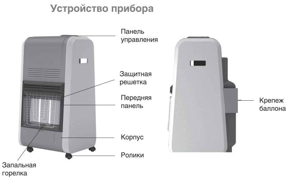 Оборудование рассчитано на работу на сжиженном газе (пропан-бутан) из стандартного баллона с редуктором. Для безопасной работы предусмотрена система контроля пламени и автоматическое отключение при опрокидывании. Рекомендуемый температурный режим эксплуатации соответствует стандартным условиям в отапливаемых и неотапливаемых помещениях.
