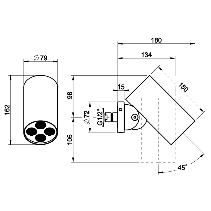 Верхний душ GESSI 316 DIAMANTATO: 4 струи, настенное крепление, цвет Steel Brushed (57287#239)