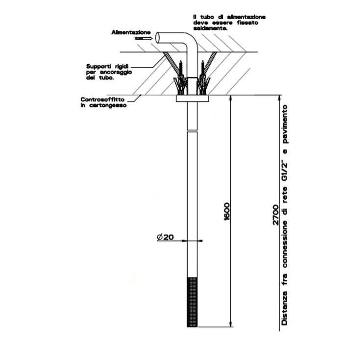 Прежде всего, оцените высоту потолка в вашей ванной комнате. Потолочный излив GESSI 316 - это не просто смеситель, это архитектурный элемент. Для его эффектной и корректной работы минимальная рекомендуемая высота от пола до точки выхода воды должна составлять не менее 2200 мм. Иначе вы не получите того самого красивого «водопада», а лишь короткую струю, бьющую в раковину.