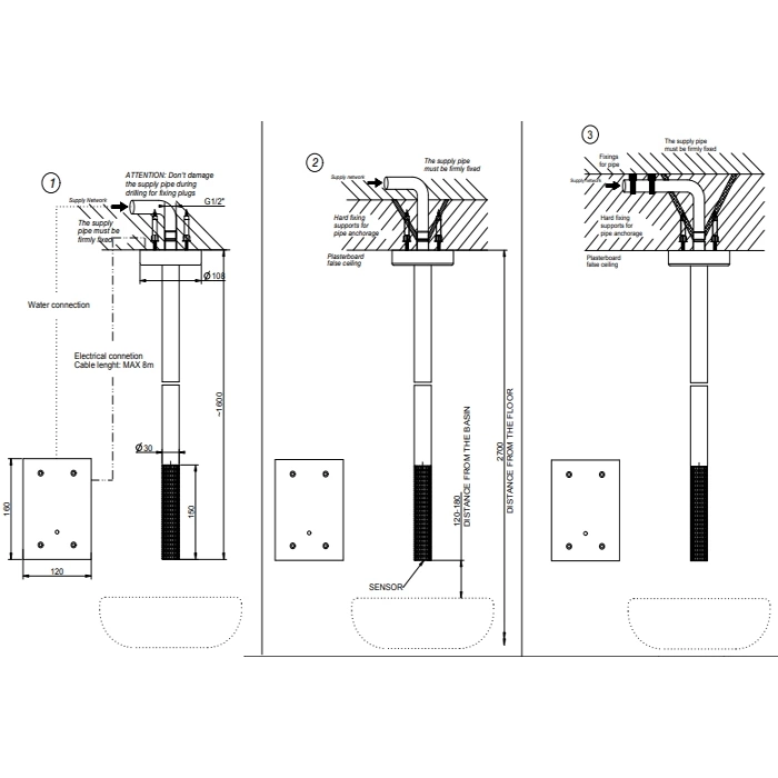 Потолочный электронный смеситель GESSI 316 MECCANICA работает от сети 220В. Для его установки требуется профессиональный монтаж с обязательным подведением электропитания к месту крепления смесителя на потолке. Рекомендуем воспользоваться услугами квалифицированного электрика и сантехника.