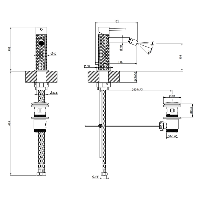 Смеситель для биде GESSI 316 с донным клапаном, излив 118 мм, цвет brushed black metal PVD (54107#707)
