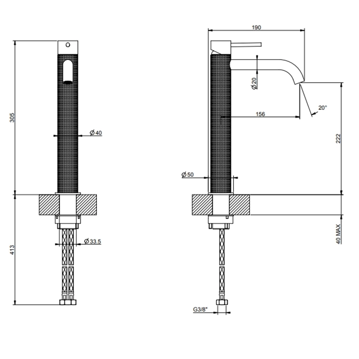 Смеситель GESSI 316 изготовлен из высококачественной латуни, что обеспечивает его долговечность и коррозионную стойкость. Основной материал покрыт прочным декоративным слоем Brushed Black Metal PVD.