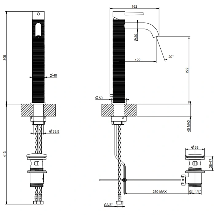 Смеситель для раковины GESSI 316 высокий: стиль и функциональность в матовом черном цвете