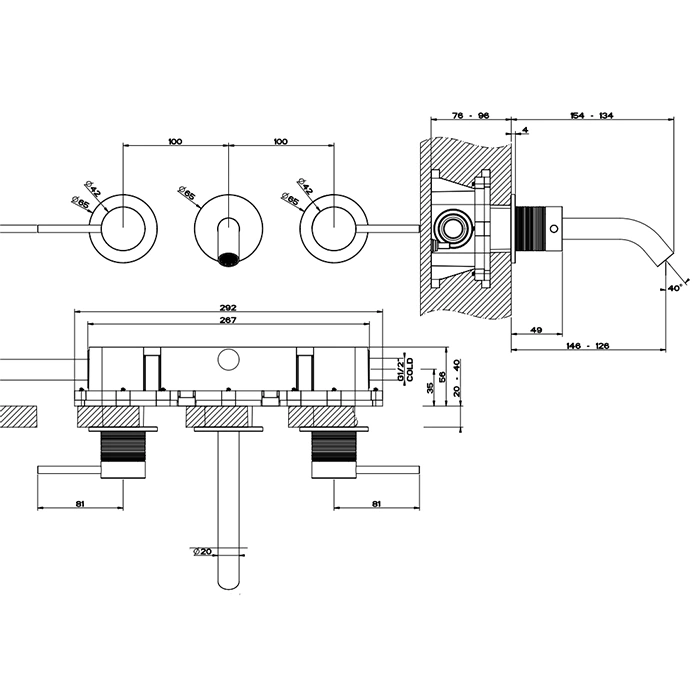 Смеситель GESSI 316 на 3 отверстия соответствует стандартному межосевому расстоянию 102 мм (или 4 дюйма) между центрами рукояток. Это самый распространенный стандарт. Чтобы убедиться в совместимости, замерьте расстояние между центрами двух крайних монтажных отверстий на вашей раковине или столешнице - оно должно быть равно 102 мм.