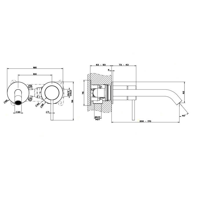 Параметры "200-170 мм" обозначают высоту излива (расстояние от места установки до верхней точки). В данном случае она составляет 200 мм, а вылет излива (длина от центра смесителя до конца носика) - 170 мм. Это важно для комфорта использования и расчета пространства над раковиной.