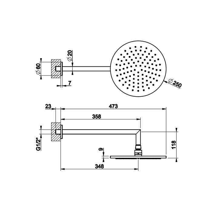 - Большой диаметр 250 мм создает роскошный равномерный дождевой поток, который мягко покрывает всё тело.