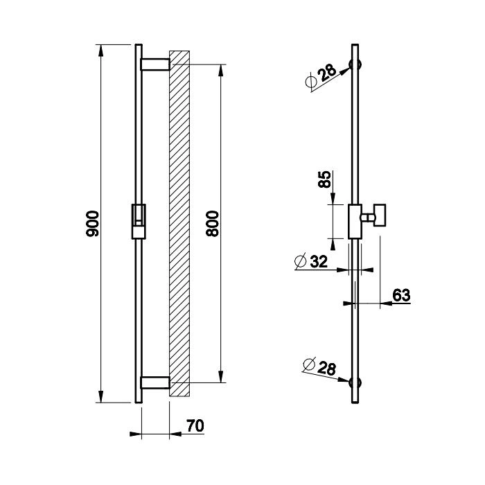 Стандартная длина штанги Gessi Anello составляет 80 см, что является универсальным размером для большинства ванн. Перед покупкой рекомендуется измерить ширину вашей ванны или душевой кабины в месте предполагаемой установки, чтобы убедиться в корректности монтажа. Конструкция штанги предусматривает надежное крепление к стене.