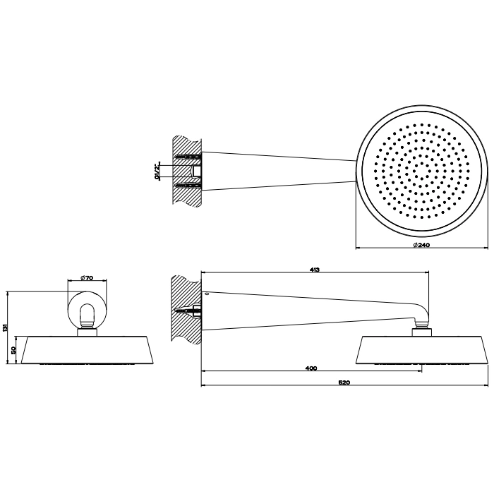 Верхний душ GESSI CONO 240 мм с настенным держателем 400 мм в цвете хром (45151#031)
