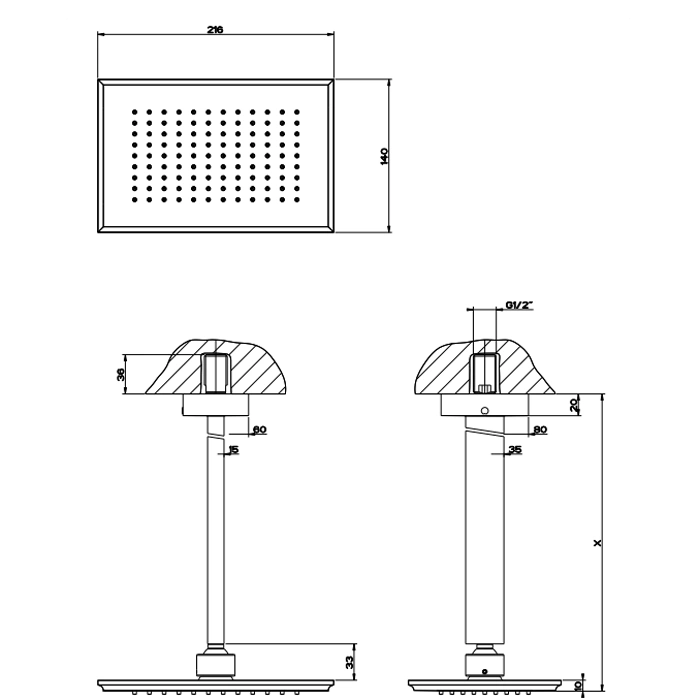 - Тип: потолочный душ (настенно-потолочный смеситель)