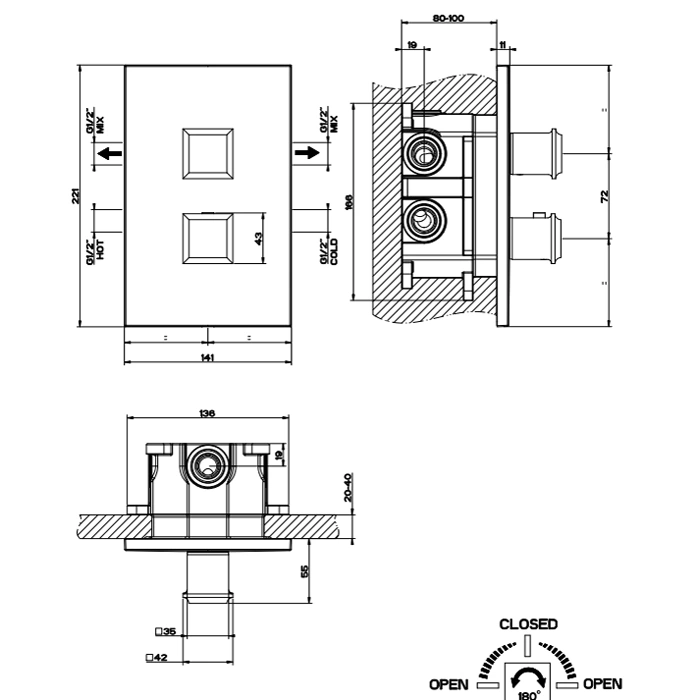 Монтаж требует профессионального подхода, так как устройство предназначено для скрытой установки в стену (в специальную монтажную коробку). Критически важно правильно подключить подводку горячей и холодной воды, а также выходы на точки водоразбора. Рекомендуем доверить установку квалифицированному сантехнику, чтобы гарантировать герметичность, точную работу термостата и сохранение гарантии.