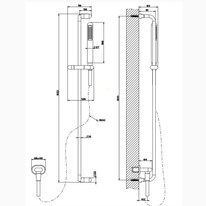 - Простой монтаж и обслуживание. Настенное крепление штанги упрощает установку, а керамические дисковые картриджи внутри смесителя гарантируют плавную регулировку и защиту от протечек.
