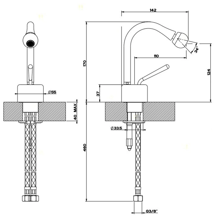 Модель Gessi Goccia 33607#031 предназначена для монтажа на одно отверстие (single hole). Это компактный и элегантный вариант установки, который подходит для большинства современных раковин биде и биде-чаш.