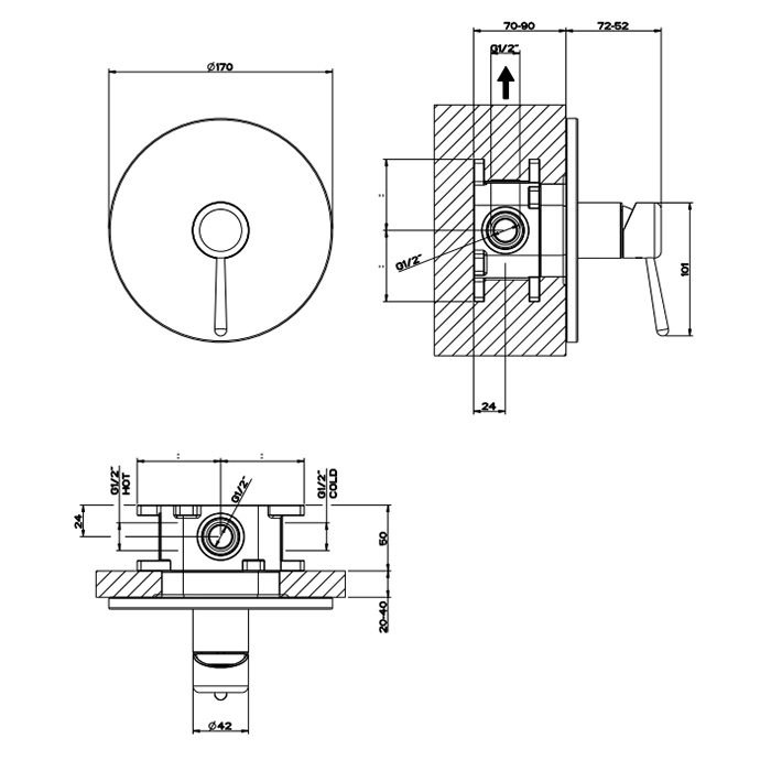 - Тип установки: строго встраиваемый (инсталляционный). Все механизмы скрыты в стене или мебели, снаружи остается только излив и рычаг.