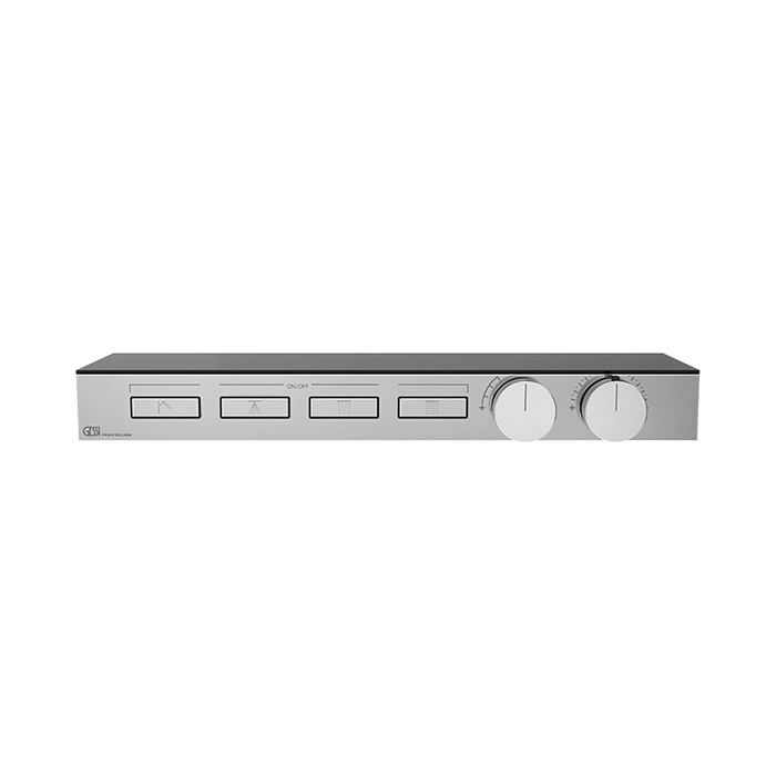Данный термостат позволяет независимо подключать и управлять четырьмя различными точками водозабора: например, верхний душ, ручной душ, боковая тропическая лейка и гигиенический биде-фонтан. Вы можете переключаться между ними с помощью отдельных органов управления на панели.