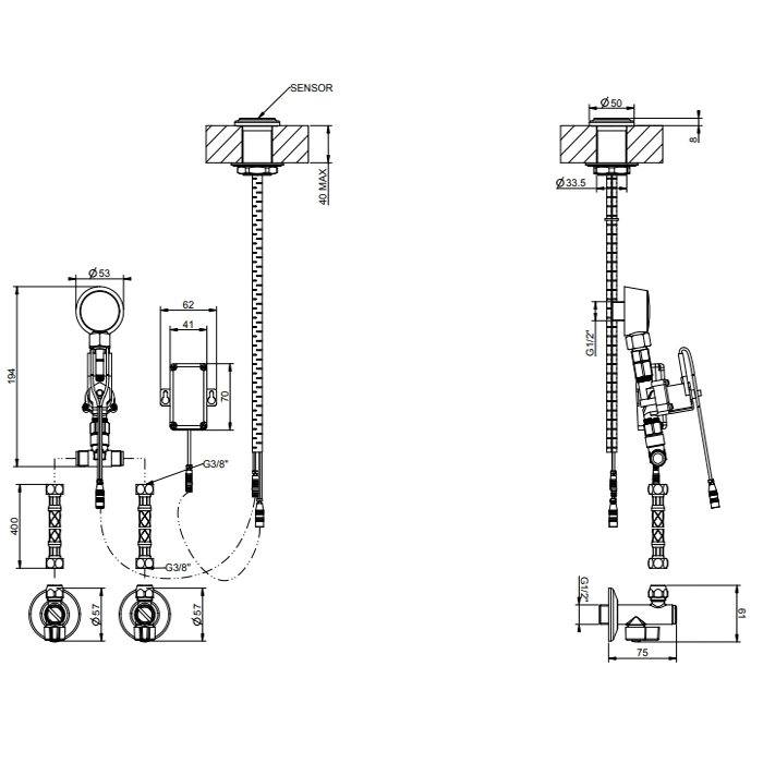 Установка требует профессиональных навыков, так как involves подключение стандартных водопроводных подводок, монтаж электронного блока, датчика и прокладку низковольтных кабелей. Настоятельно рекомендуем доверить монтаж квалифицированному сантехнику, знакомому с установкой электронной сантехники.