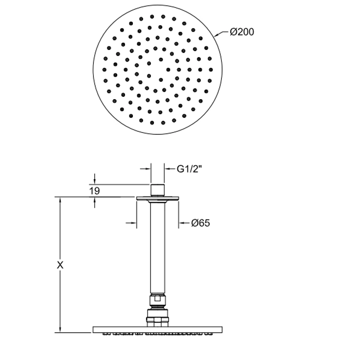 - Тип: Потолочная душевая головка (дождевая насадка)