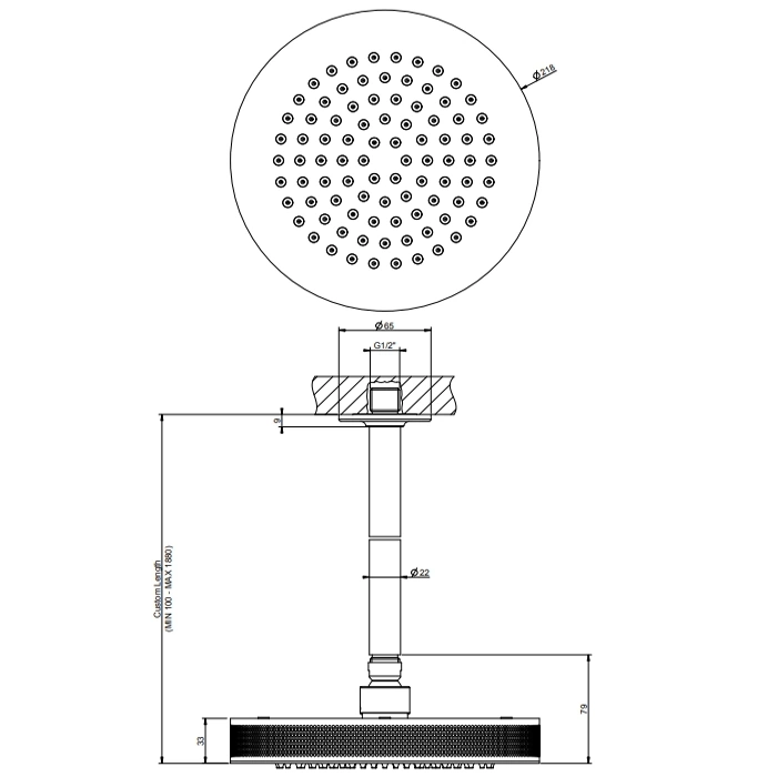 Потолочная душевая головка GESSI INCISO с регулируемой длиной - это синоним итальянского качества, инновационного дизайна и продуманного до мелочей комфорта для вашей душевой зоны.