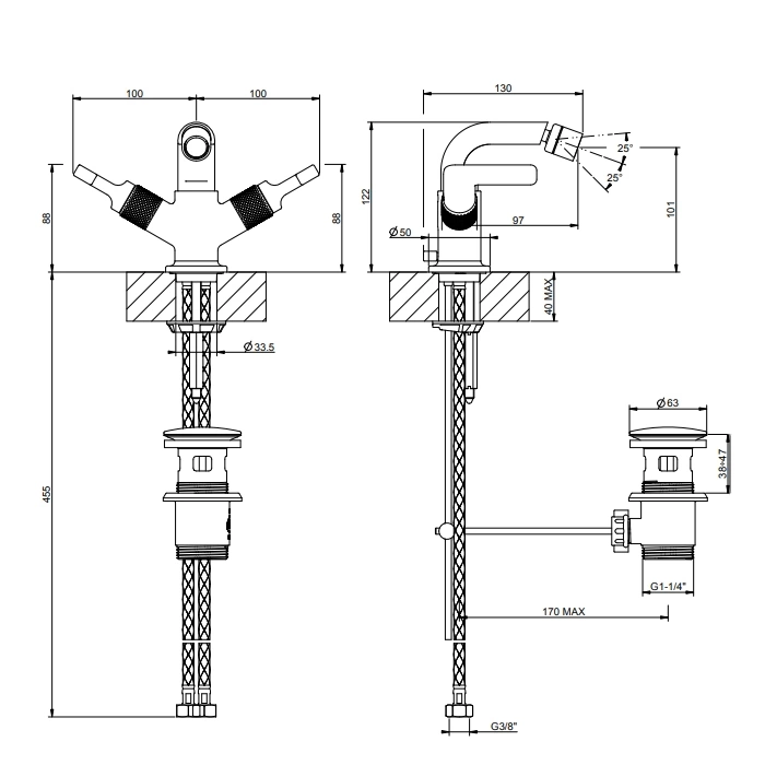 - Высота излива: 97 мм. Оптимальный размер для комфортного и гигиеничного использования биде.