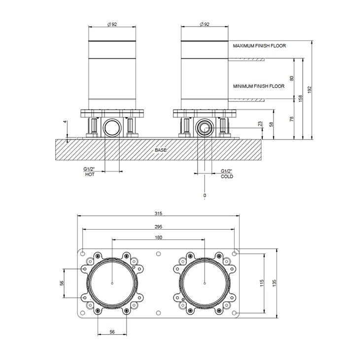 Точность разметки — ваше всё. Заранее узнайте точную высоту декоративного стебля и излив смесителя GESSI INCISO. Прибавьте к этой высоте толщину будущего напольного покрытия (плитка, мрамор). Встраиваемая часть должна быть установлена так, чтобы после укладки финишного покрытия резьбовые штуцеры были на нужном уровне — не слишком глубоко и не выступая наружу.