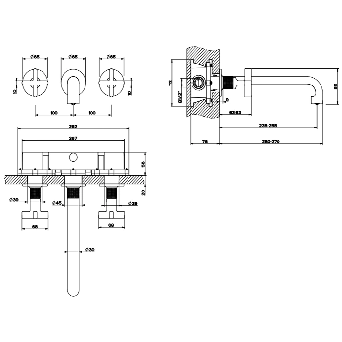 - Высота излива 255 мм при вылете 235 мм для удобного использования.