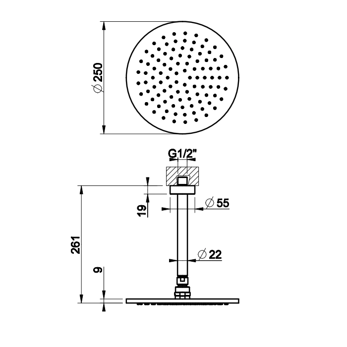 Комплектация зависит от конкретного артикула. Как правило, базовая комплектация включает потолочную лейку с поворотным шарниром и элементы для скрытого монтажа. Настенный смеситель, ручной душ, термостатический картридж или другие дополнительные элементы могут продаваться отдельно. Необходимо уточнять полный состав выбранной модели.