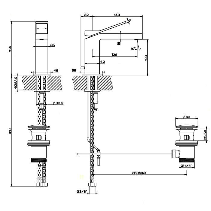 Модель Rettangolo K с донным клапаном предназначена для установки на раковину или столешницу. Его прямоугольная форма и минималистичный дизайн идеально подходят для современных интерьеров. Перед покупкой проверьте наличие или возможность создания монтажного отверстия в раковине/столешнице под данный смеситель.