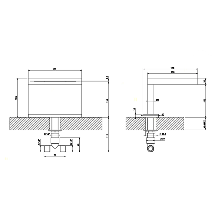 Изготовленный из латуни с покрытием хром, излив гарантирует долговечность и устойчивость к коррозии. Система монтируется скрыто, что сохраняет чистоту линий и эстетику пространства.