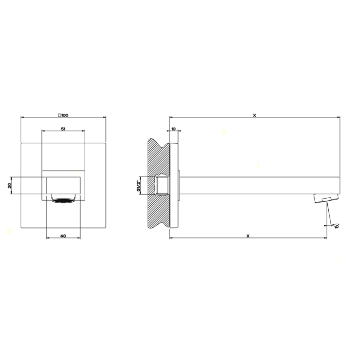 Излив Gessi Rettangolo имеет строго настенный тип монтажа. Он монтируется на стену над ванной с помощью скрытого крепления, что создает аккуратный и современный вид без лишних деталей.