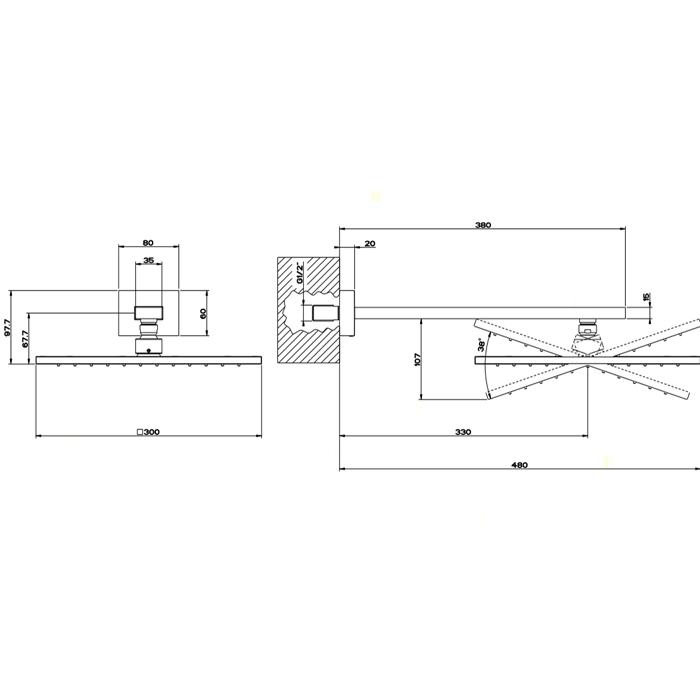 - Универсальность монтажа: настенный верхний душ может быть установлен как самостоятельный элемент или интегрирован в комбинированную душевую систему.