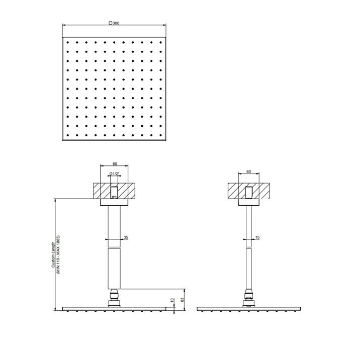 Ключевая отличительная черта - возможность регулировки по высоте. Эта опция позволяет идеально адаптировать положение лейки и ручного душа под рост любого пользователя, обеспечивая максимальный комфорт и индивидуальный подход. Размер потолочной плиты 300x300 мм идеально вписывается в стандартные планировки.