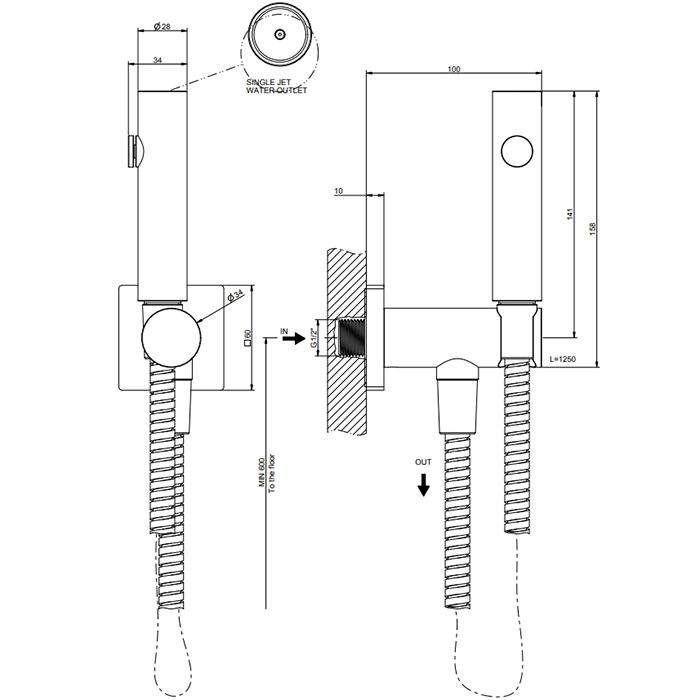 Данная модель предназначена для настенного монтажа. Она имеет подключение 1/2 дюйма и фиксируется на стене рядом с унитазом или биде. Для установки рекомендуется привлечь профессионального сантехника.