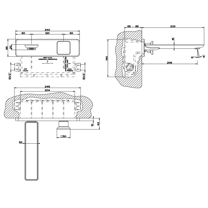 - Плавная и точная регулировка вылета из стены. Уникальная конструкция позволяет тонко настраивать положение смесителя после фиксации основной платформы, обеспечивая идеальное позиционирование.
