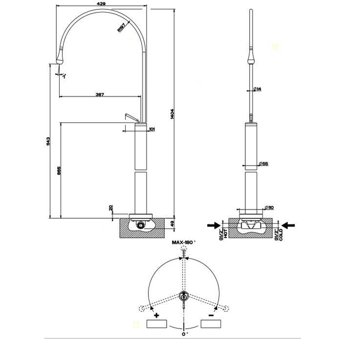 - Тип излива: Gessi 33629#031 - встраиваемый в столешницу / Классические модели - отдельный высокий излив.
