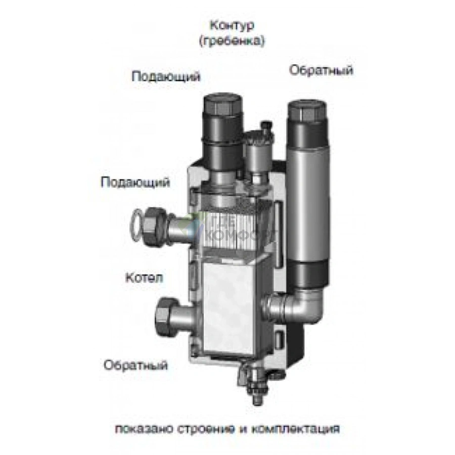- Назначение: Гидравлическое разделение контуров в системах отопления и ГВС