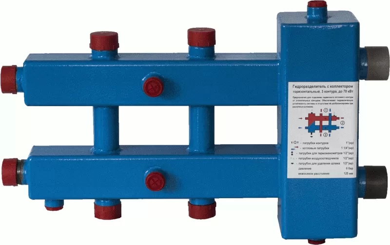 Горизонтальный гидравлический разделитель (гидрострелка) со встроенным коллектором - это профессиональное решение для балансировки и защиты сложных систем отопления. Модель предназначена для разделения первичного (котлового) и вторичных контуров, что обеспечивает стабильную работу нескольких потребителей тепла, таких как радиаторы, тёплые полы и бойлеры косвенного нагрева.