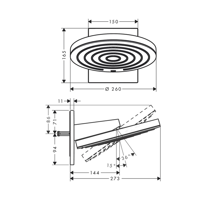 Изделие с артикулом 24150670 отличается продуманной эргономикой. Диаметр 260 мм создает оптимальную площадь покрытия, обеспечивая равномерный и насыщенный поток воды для комфортного принятия душа.