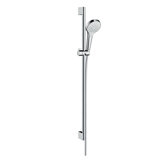Душевой набор HG Croma Select S: штанга 900 мм, ручной душ 100 мм с системой 3Jet Rain и технологией EcoSmart, цвет белый/хром (26573400)