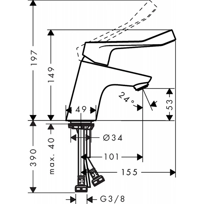 Смеситель для раковины Hansgrohe Focus Care с длинной ручкой и коротким изливом, хром (31914000)
