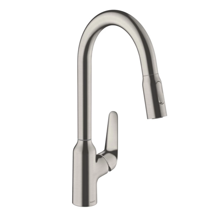 Кухонный смеситель Hansgrohe Focus M42 с выдвижным душем в цвете под сталь (71800800)